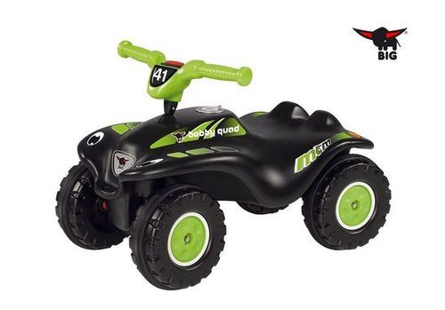 Pojazd przypomina prawdziwy quad. Jest stabilny i bezpieczny. Specjalny profil siedziska pozwala na zabawę w dwóch pozycjach siedząc lub klęcząc na jeździku. Dziecko odpychając się nogami z pewnością będzie się prawidłowo rozwijało i świetnie bawiło. Trwała konstrukcja jeździka, gwarantuje długi okres eksploatacji. Posiada specjalne plastikowe ciche koła, mechanizm holowniczy z przodu, hak na przyczepę oraz klakson. Skrętne koła gwarantują doskonałą przyczepność i sterowność. Dodatkowym atutem jest możliwość doczepienia przyczepki Big Bobby Car, stacyjki lub koguta firmy Big. Maksymalne obciążenie 50kg