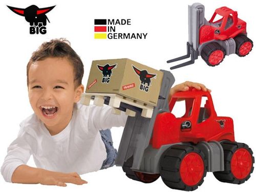 Doskonały wózek widłowy do zabaw w domu i na zewnątrz.Najdoskonalsza jakość na rynku! Niemiecka wytrzymałość i precyzja. Duży pojazd zachwyci każdego małego magazyniera!Zabawka stworzona z myślą o najmłodszych. Wytrzymały plastik oraz specjalne, miękie koła, które nie rysują powierzchni i nie hałasują są idealne do zabawy w piaskownicy jak i w domu. Dzięki opływowym kształtom maluch nie zrobi sobie krzywdy, a umycie pojazdu z piasku i błota potrwa zaledwie kilka sekund.Wózek widłowy Big Power Worker zawiera w zestawie paletę oraz kartonik z logiem producenta Big.Dzięki uchwytom znajdującym się z boku można poruszać widłami w górę i w dół lub rozładować paczkę na jedną ze stron.