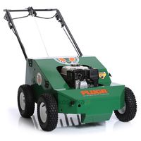 Główne zalety aeratora tłokowego Billy Goat PL2500SPH: Maksymalna wydajność do 3250m²/h dzięki zastosowaniu japońskiego, górnozaworowego silnika Honda GX200 o mocy 5.5KM, z żeliwną tuleją cylindra, łożyskowanym, kutym wałem korbowym i momentem obrotowym 12,5Nm. Lekki rozruch zapewnia system zapłonu automatyczną, mechaniczną dekompresją a o czystą pracę silnika dba dwuelementowy filtr powietrza. Silnik objęty jest 3-letnią gwarancją przy zakupie na firmę i zakupie prywatnym; Płynny napęd hydrostatyczny o prędkości maksymalnej 6,5km/h, z niezawodną przekładnią Hydro-Gear umożliwia precyzyjne prowadzenie aeratora PL2500SPH oraz dokładne określenie gęstości wykorków. Dzięki napędowi hydro możemy ponadto bezpiecznie i stabilnie prowadzić urządzenie na terenach pochyłych czy pagórkowatych, z nachyleniem do 20°; Żeliwny, tłokowy korbowód ze wspomaganiem sprężynowym dla efektywniejszego zanurzenia wykorków w ziemi zapewnia precyzyjną i skuteczną aerację nawet w twardej i suchej glebie. Gęstość wykorków można regulować dedykowaną, 3-stopniową dźwignią narzucającą prędkość pracy korbowodu (im niższy bieg, tym gęściej osadzone są wykorki, szybszy bieg przekłada się na rzadsze rozmieszczenie wykorków). Idealne wykorki o głębokości do 7cm dzięki zastosowaniu 8 bolców pustych wykonanych ze stali utwardzanej po obróbce cieplnej, odznaczającej się wyjątkową trwałością i odpornością na zużycie. Odpowiedni kąt nachylenia bolców sprawia, że maszyna nie wymaga dodatkowego obciążenia i uzyskujemy idealne wykorki bez podnoszenia darni; Szybkie i wygodne serwisowanie dzięki łatwo demontowanej pokrywie górnej, zabezpieczonej gumowymi mocowaniami - zdjęcie pokrywy zajmuje kilkanaście sekund; Łatwe manewrowanie i prowadzenie aeratora Billy Goat PL2500SPH zapewniają bieżnikowane, 12-calowe, pół-pneumatyczne opony ze stalowymi felgami. Wyposażenie uzupełniające stanowi rydwan (podest na gumowych kółkach), który możemy podpiąć z tyłu maszyny i przezbroić z trybu aeratora pchanego w samojezdny; Wygodne, kompaktowe składowanie i transport zapewnia szybko i sprawnie składany uchwyt; Nazwa produktuAerator tłokowy Billy Goat PL2500SPHMarka silnikaHondaModel silnikaGX 200Typ silnikaspalinowy czterosuwowyPojemność silnika (cm³)196Pojemność zbiornika oleju (L)0.6Pojemność zbiornika paliwa (L)3.1RozruchręcznySzerokość robocza (cm)63.5Napędtak - na tylne kołaPrzekładniahydrostatycznaRegulacja prędkości napędutak - kilka prędkościWaga (kg)163.3Gwarancja konsument24 miesiące (maszyna), 36 miesięcy (silnik)