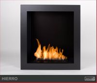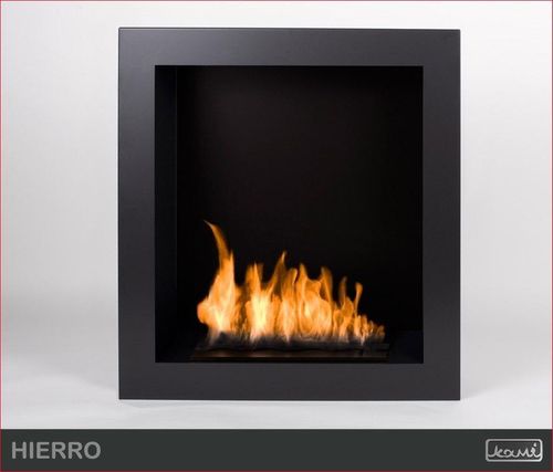 Biokominek do zabudowy Hierro może być również użytkowany jako biokominek naścienny (wiszący). Jego wymiary pozwalają na ozdobienie ściany nawet w niewielkich pomieszczeniach. Do wyboru są wkłady typu FALA lub LINIA (czarny lub inox). Konstrukcja biokominka wykonana jest z blachy stalowej o gr. 1,5 mm i malowana proszkowo na kolor czarny półmatowy NON 000. Elementem dekoracyjnym jest stal lakierowana proszkowo również na kolor czarny półmatowy NON 000.