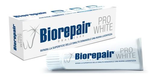 Wyjątkowa formuła pasty BioRepair Pro Whitening łączy działanie nanocząsteczek MICROREPAIR (biomimetyczne i biokompatybilne cząsteczki mające zdolność odbudowy szkliwa i zębiny) z opatentowanym polimerem PVP (tworzy specjalną powłokę/filtr na szkliwie, dzięki któremu usuwa istniejące osady, a także tworzy tarczę uniemożliwiającą powstawanie nowych osadów). Cząsteczki MICROREPAIR remineralizują szkliwo i odbudowują mikrouszkodzenia niewidoczne dla oka. Polimer PVP tworzy niewiarygodnie cienką powłokę na szkliwie, uniemożliwiając przyleganie do szkliwa pigmentów i związków przebarwiających, sprawiając, że zęby lśnią coraz mocniej z każdym dniem. Unikalne działanie synergiczne.