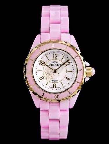Kolorystyka: Tarcza w kolorze różowym, koperta w kolorze złoto-różowym, bransoleta w kolorze różowym