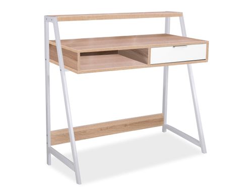 Opis:blat: MDF, kolor: dąb, stelaż: metal, kolor: biały, max obciążenie 40kg