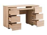 Biurko Jaris Sonoma Biały Połysk - Biurko Jaris to funkcjonalne rozwiązanie dla każdej osoby wykonującej pracę umysłową przed komputerem lub zajmującej się prowadzeniem dokumentacji. Największym atutem biurka jest wielość szuflad oraz ich pomysłowe rozmieszczenie. Szuflady znajdują się po obu stronach siedzącego za biurkiem użytkownika (w kolumnach po trzy szuflady), dzięki temu można do nich swobodnie sięgać bez konieczności wstawania, co znacznie ułatwia i przyspiesza pracę. Pod blatem standardowo znajduje się wysuwany panel pod klawiaturę. Mebel o gładkiej powierzchni, bez uchwytów i zbędnych zdobień, idealnie wpasowuje się w nowoczesne trendy. To mebel dla osób ceniących sobie porządek i dobrą organizację pracy.