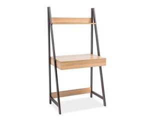 Biurko komputerowe MATIS B posiada blat i półkę wykonaną z płyty MDF w kolorze dębu, natomiast mocny stelaż zrobiony jest z metalu malowanego na kolor ciemnego brązu. Blat biurka oferuje taką ilość miejsca by zmieścić na nim laptopa. Nad blatem znajduje się praktyczna półka, na której z powodzeniem można ustawić filmy, gry, płyty muzyczne lub dekoracje w postaci ramek ze zdjęciami. Moana go kompletować z regałami MATIS. DANE TECHNICZNE: WYMIARY: Długość: 74 cm Głębokość: 48 cm Wysokość: 147 cm MATERIAŁ: Blat - płyta MDF, kolor - dąbStelaż - metal malowany, kolor - ciemny brąz Towar do samodzielnego montażu. Instrukcja oraz wszystkie narzędzia potrzebne do zmontowania towaru znajdują się wewnątrz opakowania