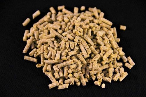 Podstawowym składnikiem naszych granulek są sprasowane płatki kukurydziane, mielona soja, płatki owsiane i siemię lniane z domieszką betainy.