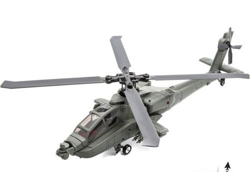 Dzięki makietowemu wykonaniu model wygląda jak przygotowany do walki. Posiada oficjalną licencję od firmy Boeing z dokładnymi detalami. Nitowanie, kokpit oraz podwozie z uzbrojeniem jest wierną kopią. Świetnie wykonany helikopter RC posiada bezszczotkowy silnik, akumulator LiPo E-flite 400 mAh 2S, a za sterowanie odpowiada nadajnik Spektrum DXe DSMX® 2,4 GHz mode 2. W zestawie jest także ładowarka.