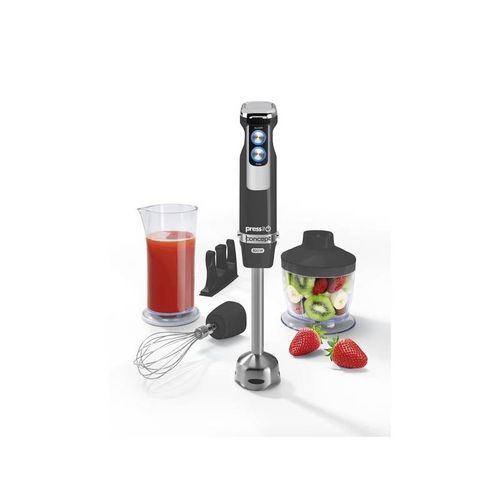 Blender o mocy 800W z nogą ze stali nierdzewnej, chopperem 500 ml, mieszadłem i dzbankiem. Szerokie zastosowanie Wielofunkcyjny blender Łatwa konserwacja Stopa ze stali nierdzewnej, zdjemowana Ergonomiczny uchwyt o specjalnej konstrukcji Prędkość turbo Ostrze ze stali nierdzewnej Zmienna prędkość Moc 800 W Łatwe czyszczenie Szerokie zastosowanieBlender ręczny TM4751 to Twój nowy niezbędny pomocnik w kuchni.Łatwo przygotuj kruszony lód do napoi, zrób swój ulubiony koktail warzywny lub owocowy.Twórz idealne i przepyszne kremy, zupy, śmietany, posiekane zioła, orzechy i inne. Dzięki mocnemu silnikowi raz dwa wykonasz sprawnie czynności w swojej kuchni. Ergonomiczny uchwyt idealnie wpasuje się do Twojej dłoni i nie przysporzy kłopotów.Wszystkie części stykające się z surowcami i żywnością wykonane są z wysokiej jakości stali nierdzewnej i nie przenoszą zapachów.Po użyciu części urządzenia wystarczy spłukać lub umyć w zmywarce.Oszczędzaj czas i przygotuj jedzenie dla siebie lub swojej rodziny w szybkim czasie.Zestaw zawiera: Trzepaczkę 500 ml chopper 800 ml dzbanek miksera z wieczkiem uchwyt do montażu Dalsze parametry Pobór mocy 800 W Płynna regulacja Tak Tryb Pulse Tak Wyposażenie, akcesoria mieszanie, chopper, trzepak, pojemnik do mieszania Wymiary Waga produktu 1.6kg Szerokość opakowania 26.0cm Wysokość opakowania 28.5cm Głębokość opakowania 15.0cm Waga produktu w opakowaniu 1.8kg