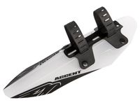 Lekki przedni błotnik wykonany z elastycznego i trwałego tworzywa sztucznego. Montowany na gumowych paskach pod dolną rurką ramy. Możliwość montażu na rurce samych pasków mocujących i szybkiego dopinania lub wypinania błotnika w zależności od potrzeb.