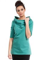 Prosty, minimalistyczny fason bluzy z krótkimi rękawami i ciekawym detalem, kominem przechodzącym w kaptur.