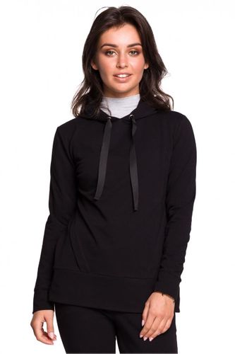 Wygodna bluza z kapturem o nowoczesnym fasonie. Na bokach asymetryczne rozcięcia. Wykonana z miękkiej dzianiny z bawełną. Posiada kaptur z kontrastującymi czarnymi troczkami. Dostępna w najmodniejszej kolorystyce. Doskonale sprawdzi się w luźnych stylizacjach na co dzień lub w drodze na siłownię.