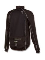 Kurtka rowerowa softshellowa Rogelli RAVELLO. Wykonana z lekkiego i oddychającego materiału o właściwościach oddychający. Bardzo dobrze chroni przed wodą i wiatrem. Z przodu posiada wodoodporny zamek na całej długości oraz kieszonkę zapinaną na zamek, w której jest szmatka do czyszczenia okularów. Z tyłu znajdziemy jedną, dużą kieszeń z wodoodpornym zamkiem. Plecy wykonane są z cieńszego i elastycznego materiału, odpowiedzialnego za odprowadzanie nadmiaru wilgoci.