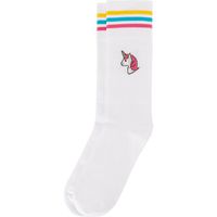Komfort, dopasowanie, wysoka jakość!Białe skarpety z kolekcji Bobby Sox to połączenie klasycznego, tenisowego designu i subtelnych elementów graficznych. Tęczowe paski i jednorożce to motyw idealny dla każdej księżniczki i marzycielki! Skarpety zostały wykonane z wysokogatunkowych materiałów - doskonale się noszą i równie dobrze wyglądają. Świetnie dogadują się z szortami i spódniczkami. Długie, białe skarpetki rządzą! Z pewnością docenisz też ich wygodę - za sprawą wykonania z najlepszej jakości materiałów (73% bawełna, 22% poliamid, 3% polipropylen 2% elastan) świetnie się noszą!Skład: 73% bawełna, 22% poliamid, 3% polipropylen 2% elastanUniwersalny designWysoka jakość wykonaniaŚwietne minimalistyczne wzoryPolski produkt!