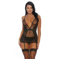 Caught You Looking cami-garter posiada dekolt V-plunge z pasującymi stringami i dołączonymi paskami do pończoch. Ten produkt jest dostarczany w pudełku.