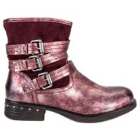 Bordowa cholewka tych workerów jest wysoka, natomiast reszta tego buta ze skóry ekologicznej ma kolor różowy. Podeszwa z tworzywa sztucznego i bieżnik wpada w brąz, więc nie będzie na niej widać jesiennych i zimowych zanieczyszczeń. Koc obuwniczy bardzo dobrze ociepla te damskie, casualowe, codzienne buty.