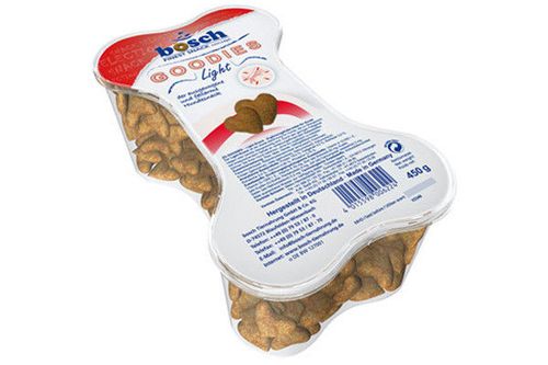 Przekąski Goodies Light są idealną nagrodą dla psów, które wykazują tendencję do nadwagi. Ciastka Light zawierają zwiększoną ilość ważnych dla układu pokarmowego dietetycznych włókien roślinnych oraz niewielką ilość tłuszczów. Dzięki temu w każdej chwili możesz nagrodzić swojego psa, nie obawiając się dostarczenia niepotrzebnych kalorii. Skład:ryż, kukurydza, jęczmień, sproszkowane świeże mięso drobiowe, ekstrakt z mięsa, pulpa buraczana (bez cukru), sproszkowane ryby, groch (suszony), drożdże (suszone), chlorek sodu, chlorek potasu. Zalecane dawkowanie GOODIES Light Waga psa (kg) 2,5 - 15 15 - 30 30 - 60 Przysmak / dzień (szt ) 5 - 30 30 - 50 50 - 85 Pamiętaj aby pies miał stały dostęp do świeżej wody!