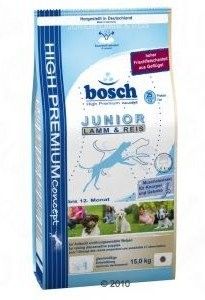 Sucha sucha karma Bosch Junior Lamb&rice dla szczeniąt w wieku od 1 do 12 miesięcy wszystkich ras. Na bazie kurczaka i jagnięciny.