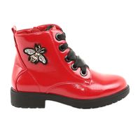 Lakierowane botki czerwone z muchą