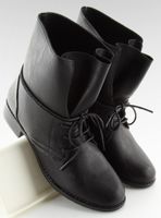 Sznurowane botki damskie na płaskiej podeszwie. Prosty fason z szeroką cholewką idealnie sprawdzi się na co dzień, więc jeśli szukasz butów, których po prostu nie będziesz chciała zdjąć z nóg to właśnie znalazłaś! Już dziś powinny być Twoje : ) Wykonane są ze skóry ekologicznej z oryginalną wstawką o fakturze skóry węża z tyłu.