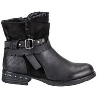 Damskie botki workery w kolorze czarnym. Buty są zapinane na suwak, na płaskim obcasie o wysokości 3,5 cm. Zostały wykonane ze skóry ekologicznej i zamszu ekologicznego. Ich wkładkę i ocieplenie stanowi koc obuwniczy. Doskonale sprawdzą się jako element uzupełniający codzienne, casualowe stylizacje.