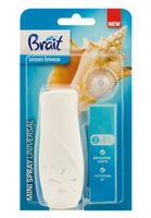 Brait Ocean BreezeSkoncentrowany odświeżacz powietrza w aerozolu o długotrwałym działaniu. Mini Spray Brait składa się z NOWEGO urządzenia i wymiennego zapasu spray’u. Urządzenie jest wielorazowego użytku, zapas łatwo się montuje, a całość utrzymuje w czystości.Dużą zaletą nowego urządzenia dozującego jest zastosowanie przyssawki zamiast taśmy klejącej, dzięki czemu można zmieniać miejsce mocowania bez obawy, że spray nie będzie się trzymać.Zawiera nowoczesną formułę 2w1 Air Care, dzięki której: skutecznie neutralizuje i pochłania cząsteczki nieprzyjemnych zapachów, zamiast je maskować; pozostawia długotrwały, przyjemny zapach.