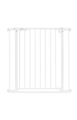Szeroki zakres od 75 do 85 cm pasuje do większości standardowych framug. Specjalna nakładka umożliwia przedłużenie barierki aż do 105 cm. Po dołożeniu dodatkowego rozszerzenia bramkę można stosować również w celu zabezpieczenia schodów.