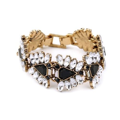 Elegancka, niezwykle efektowna bransoleta w kolorze złotym, z ozdobnymi kryształkami.Bransoletka świetnie pasuje do eleganckich, jak również do codziennych stylizacji.Wykonana jest ze stopów metali nieszlachetnych.Nie są odporne na wodę.Nie zawiera niklu ani chromu.