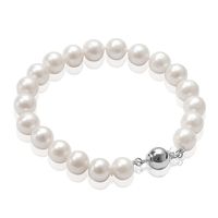 Staviori Bransoleta 19cm. Naturalne Perły hodowlane słodkowodne. Białe Jakość B Srebro rodowane 0,925. Średnica 8-9 mm. Uwaga! Każda perła jest dziełem natury, w związku z tym każdy wyrób i same perły nie są identyczne.
