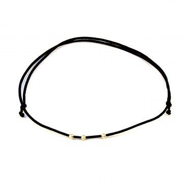 Bransoletka sznurkowa z regulacją. Kulki złote, 14k, próba 585. Waga łączna kulek ok 0,09 g. Możliwość zmiany koloru sznurka. Hand made.