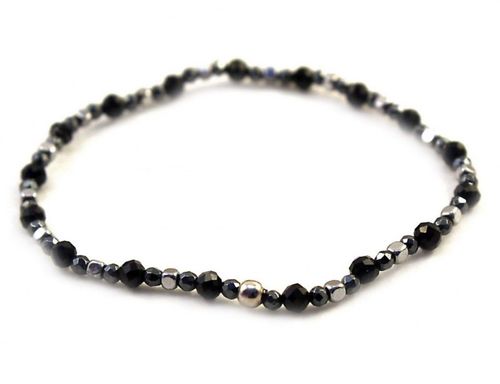Kamień: Onyks + Hematyt + Srebro rodowane