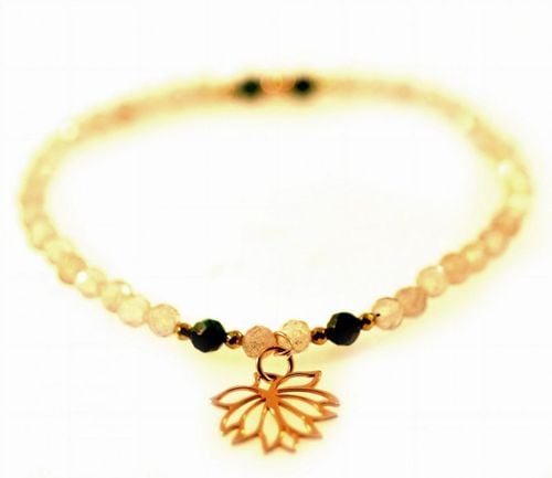 Kamień: Labladoryt + Malachit+ Hematyt+ srebrne elementy, pozłacane 18 karatowym różowym złotem