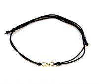 Bransoletka wykonana na sznurku w kolorze czarnym. Elementy srebrne, pozłacane 24 karatowym złotem. Złocenie wykonywane jest specjalną techniką, dzięki której złocenie jest bardziej odporne na ścieranie. Regulacja długości. Hand made.