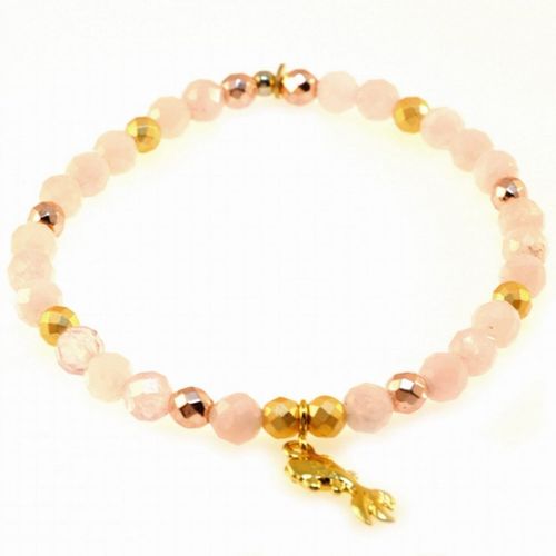 Kamień: Morganit + Hematyt+ srebrne elementy, pozłacane 24 karatowym żółtym złotem