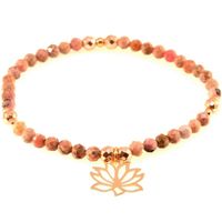 Kamień: Rodonit + Hematyt+ srebrne elementy, pozłacane 18 karatowym różowym złotem