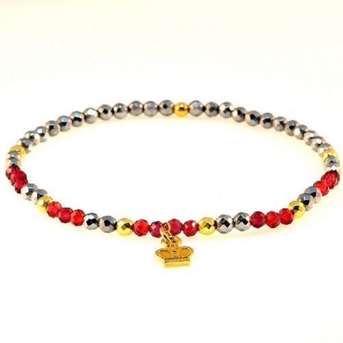 Kamień: Rubin Klarowany+ Hematyt + srebrne elementy, pozłacane 24 karatowym żółtym złotem