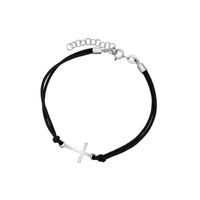 Piękna bransoletka wykonana w całości z gładkiego srebra najwyższej próby 0,925 w połączeniu z sznurkiem.