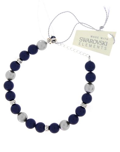 Charming bracelet made entirely of smooth finished sterling silver 925 with Swarovski crystals in dark blue color.