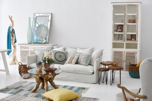 Kolorowy, pełen fantazji styl boho we wnętrzach stanowi mieszankę hipisowskiego luzu i designu z lat 60. Wzbogacony elementami etnicznymi, ekologicznymi, a także motywami ludowymi oraz artystyczną nonszalancją paryskiej bohemy. Swobodny urok stylu boho wynika głównie z jego niefrasobliwego, niezobowiązującego charakteru.Wnętrza w stylu boho to feeria barw, wzorów oraz stylistycznych konwencji. Nazwa ma mocno artystyczne konotacje, bo stanowi skrót od terminu „bohema”. Miszmasz, mocne kolory i festiwal wzorów rodem z najróżniejszych stylistyk: etnicznych, psychodelicznych, kwiatowych, folkowych i geometrycznych – to jego znaki rozpoznawcze. Kolekcja Boho to kolorowe, dekoracyjne wzory inspirowane podróżami ozdobią poduszki, lekkie pledy i dywany. Naturalnym, jasnym odcieniom beżu będą towarzyszyć intensywne turkusy, słoneczne żółcie oraz ogniste czerwienie i pomarańcze. Stoły i stoliki z naturalnego, egzotycznego drewna sprawią, że każde wnętrze będzie naprawdę wyjątkowe. Swobodnego uroku dodadzą im akcesoria pełne motywów etnicznych: ratanowe kosze, skrzynie oraz dekoracje wykonane z trawy morskiej i palmowych liści w tradycyjnych splotach.