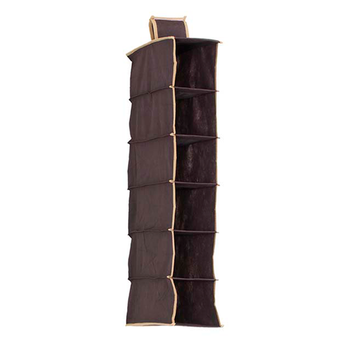 Składany Organizer z sześcioma półkami. Wykonany z „oddychającej” TKANINY, przepuszczającej powietrze i łatwej do czyszczenia. Krawędzie dodatkowo wzmocnione taśmą, zabezpieczającą przed uszkodzeniem. Można zawiesić go na drążku w szafie i tym samym w prosty sposób zyskać dodatkowe półki. Jest ciekawym rozwiązaniem, które sprawi, że w szafie zmieścimy jeszcze więcej rzeczy. Tak przemyślany sposób przechowywania sprawi, że nasze ubrania nie będą się gniotły i dłużej pozostaną jak nowe. Składany organizer świetnie sprawdza się zarówno w domu jaki na wyjeździe. Można w nim przechowywać odzież, buty lub czapki.