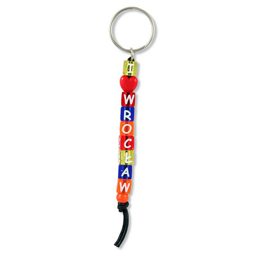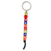 Brelok w kształcie kostek tworzący napis Wrocław.