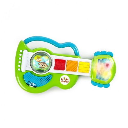 Gitara malucha od Bright Starts to znakomita zabawka dla każdego małego artysty. Jej ergonomiczny kształt pozwoli przybrać pozycję prawdziwego gitarzysty i wygodnie zagrać melodie. Dźwięki wydobywają się z gitary podczas kręcenia kuleczką znajdującą się w miejscu strun. Dodatkowe przyciski na gryfie pozwolą odtworzyć więcej melodii, a podczas grania zaczynają świecić kolorowe światełka. Zabawka ma posiada możliwość ustawienia 2 różnych poziomów głośności.