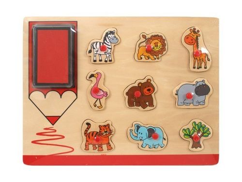 Układanka z tuszem i pieczątkami z motywem dzikich zwierząt.