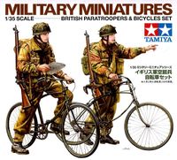 Zestaw zawiera plastikowe figurki brytyjskich spadochroniarzy z rowerami do sklejania.
