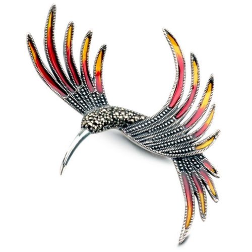 Staviori Broszka. Markazyty. Emalia. Srebro rodowane 0,925. Wymiary 50x70 mm.