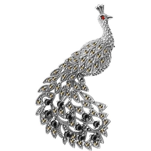 Staviori Broszka. Wisiorek. Markazyty. Onyks. Granat. Srebro rodowane 0,925. Wymiary 29x59 mm. Może być używana jako wisiorek.