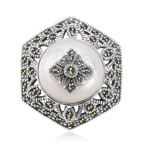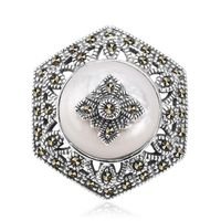 Staviori Broszka. Markazyty. Masa Perłowa. Srebro rodowane 0,925. Szerokość 23 mm. Może być używana jako wisiorek.