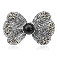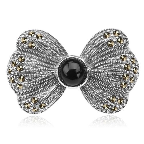 Staviori Broszka. Markazyty. Onyks. Srebro rodowane 0,925. Wymiary 21x34 mm.