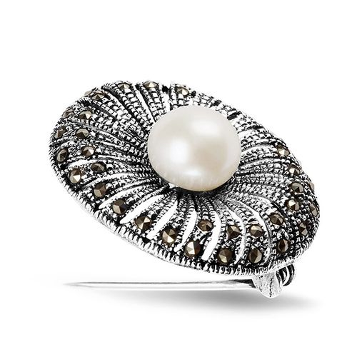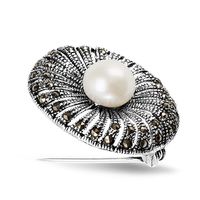 Staviori Broszka. Naturalne Perły hodowlane słodkowodne. Markazyty. Srebro 0,925. Średnica kulki 9 mm. Wymiary 30x23 mm.