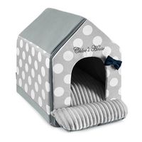 Budka jest uszyta z 2 rodzajów materiałów – bawełny i materiału wyjątkowo odpornego na wchłanianie brudu i kurzu. Delikatny styl materiału w kropki sprawdzi się zarówno do romantycznych jak i nowoczesnych wnętrz. Dla ozdoby przy wejściu przymocowano gustowną kokardę z zamszu. Budka jest w pełni rozkładana. Wejście jest rozsuwane na suwak, dzięki czemu można je odpiąć do prania. Boki budki są usztywnione i w łatwy sposób można je wyjąć i uprać pokrowiec. To zapewnia długotrwały i piękny wygląd legowiska. Dla wygody psa i kota w środku znajduje się wyjmowana poducha, która obszyta jest z jednej strony miękkim kocykiem, a z drugiej przyjemnym w dotyku i jednocześnie bardzo praktycznym materiałem. Wnętrze budki obszyte jest uroczą bawełną w piękne wzorki. Całość wygląda słodko ale także elegancko. Budka Toscany będzie stanowić nie tylko wygodne miejsce do spania i spędzania czasu wolnego Twojego zwierzaka, ale także wpisze się jako piękny dodatek w wystroju mieszkania lub domu.