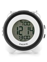 Elektroniczny budzik marki Pacific zasilany trzema bateriami AAA.